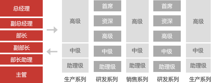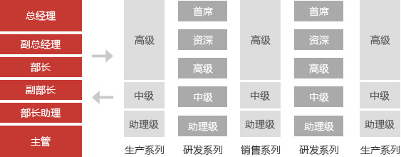 即两条员工发展通道,指行政序列发展通道和业务序列发展通道