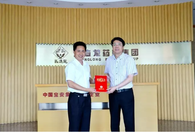 2017年7月,湖北省红十字会党组书记、常务副会长宋悦明(左)来司回访答谢,向公司董事长陈平(右)颁发荣誉证书